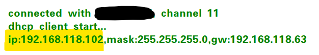 - 查看串口软件中输出的IP。